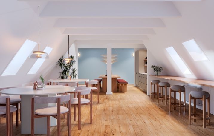 Der er mulighed for frokostordning hos udlejer (ca. 200 m fra lejemålet) hvortil man også får adgang til fælles mødelokaler og unik tagterrasse, med vue uden sammenligning.