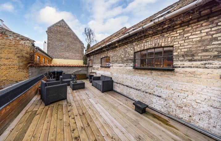 Direkte fra kantinen er der ydermere direkte udgang til en stor 100 m² eksklusiv tagterrasse, som man ikke finder mange steder i København.