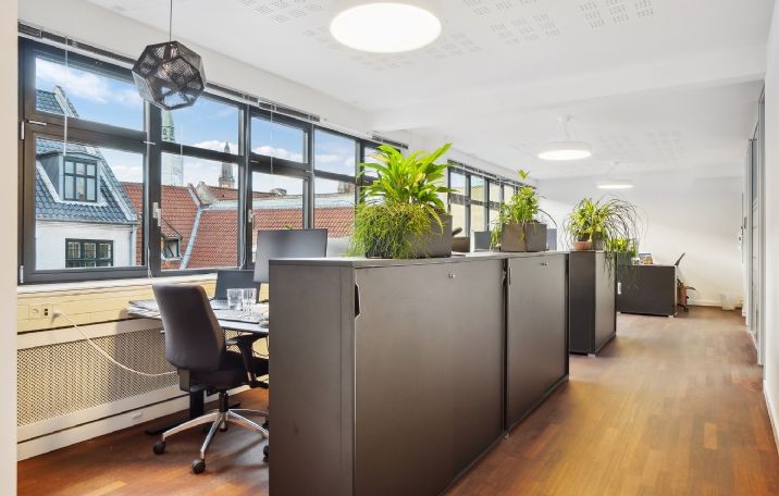 På 4. sal udbydes nu et veldisponeret kontorlejemål på 98 m².
